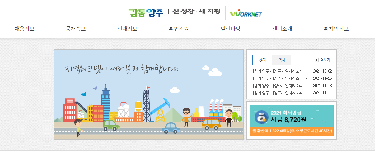 양주시청 워크넷 일자리 알아보기