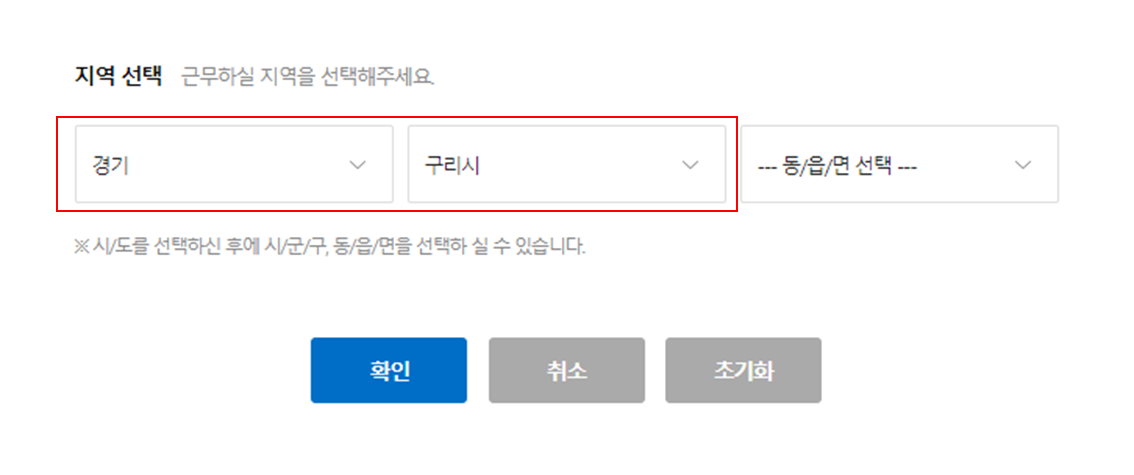 먼저, 잡코리아에 접속 > 지역별 세부메뉴에서 경기도, 구리시를 선택하시면 됩니다.