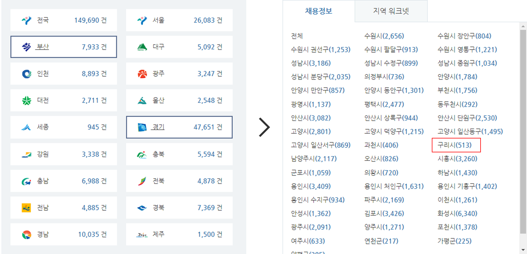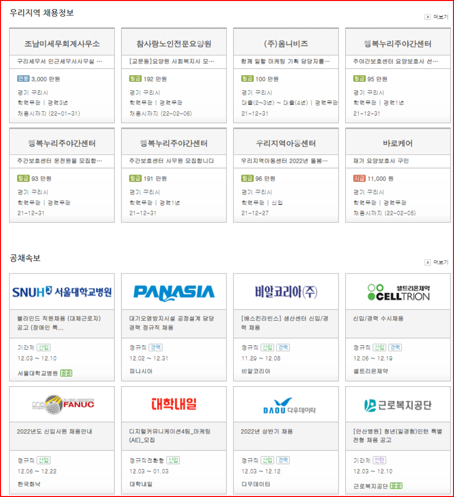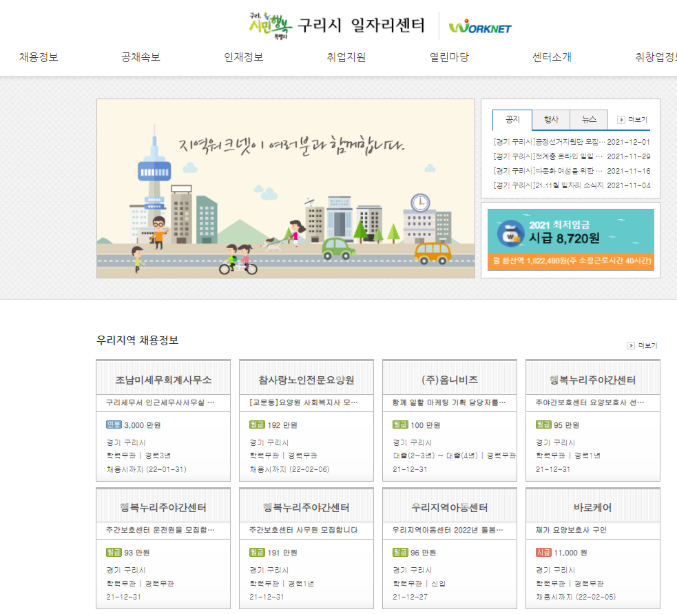구리시의 취업정보는 지역워크넷 취업사이트를 직접 접속하셔서 구인정보를 찾아보셔도 됩니다.
