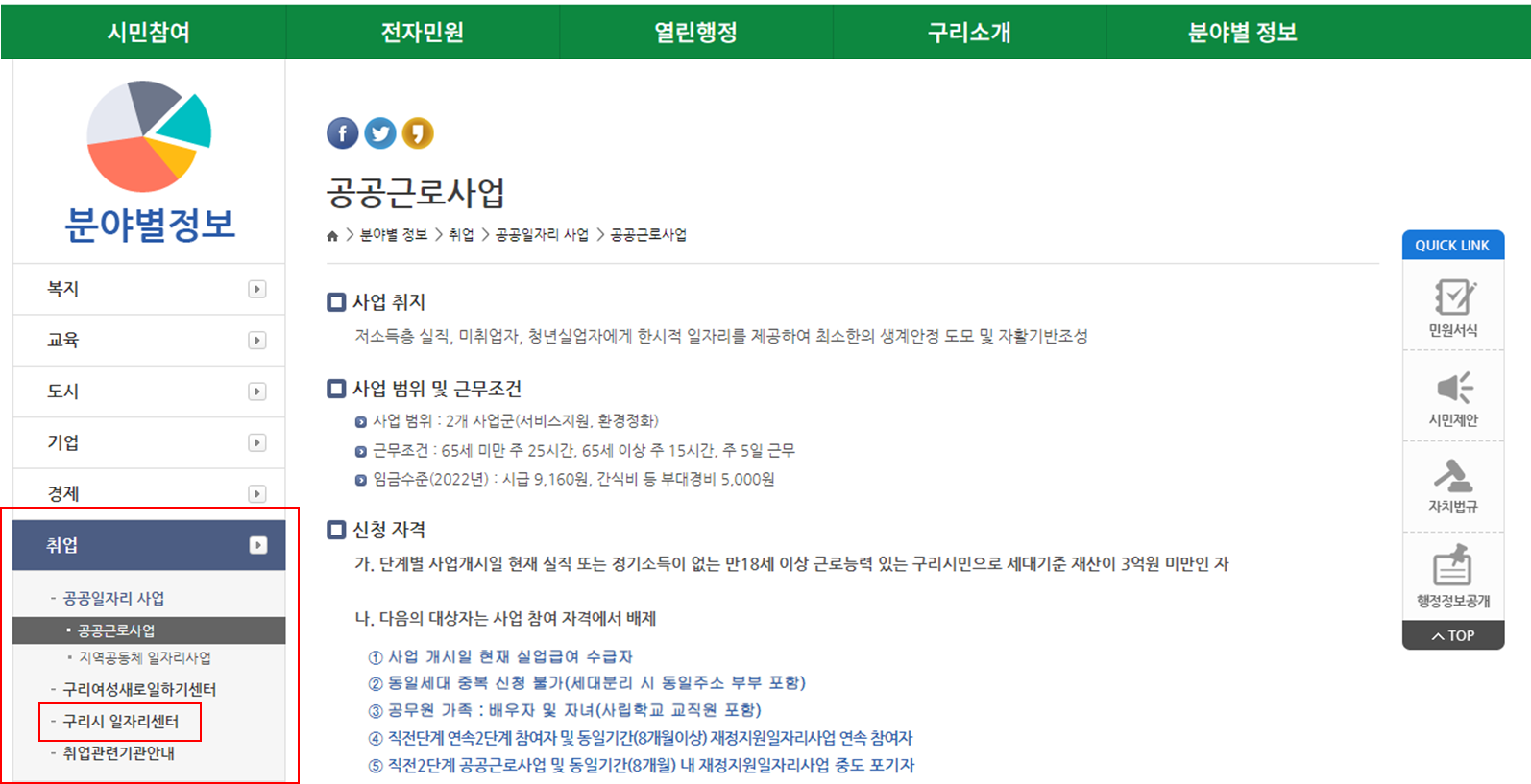 구리시청에서 제공하는 채용정보와 공공일자리를 알아보겠습니다.