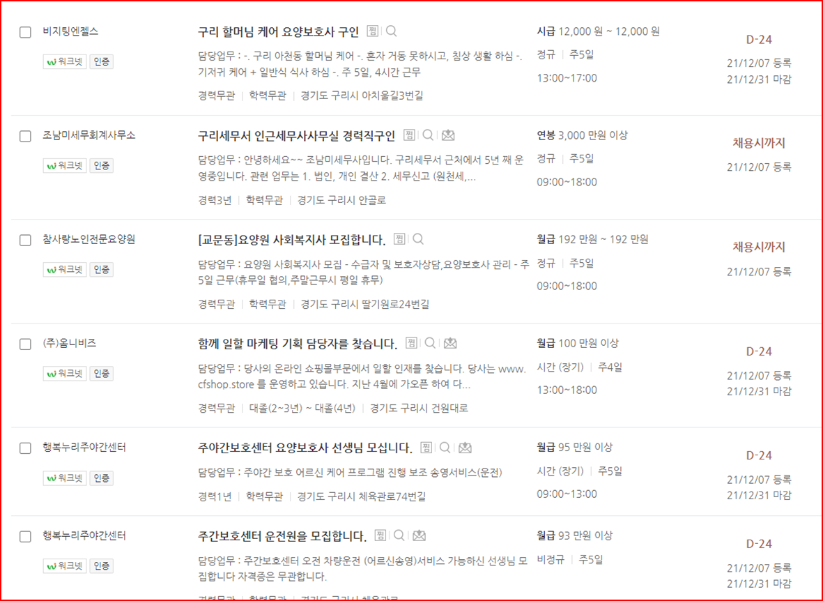 구리시 워크넷 일자리 알아보기