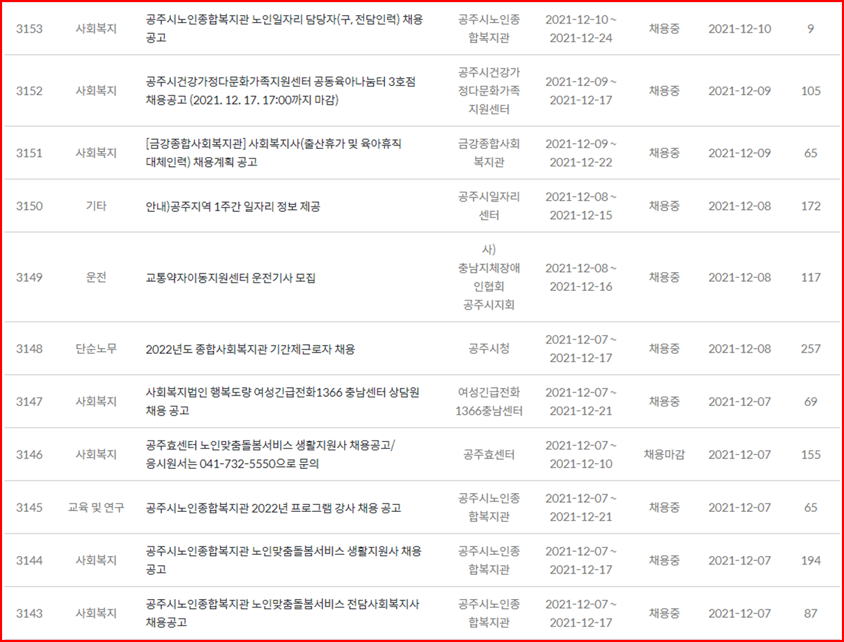 공주시청에서 제공하는 채용정보와 공공일자리를 알아보겠습니다.
