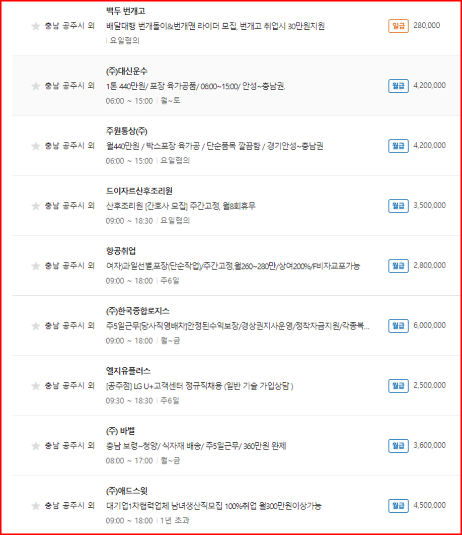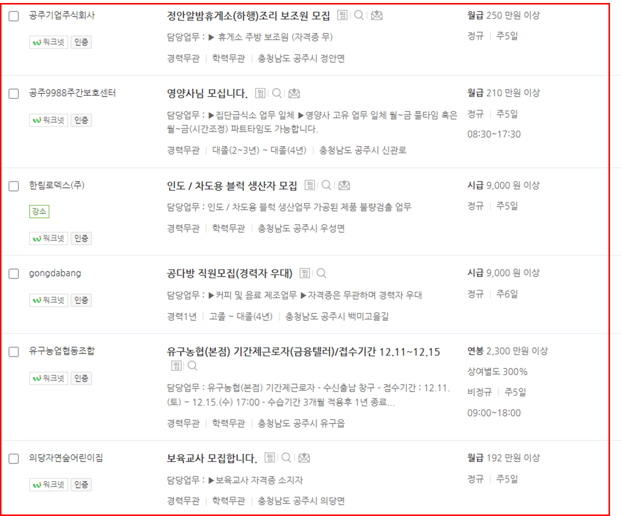공주시청에서 제공하는 일자리는 아래를 통해 확인해보세요.