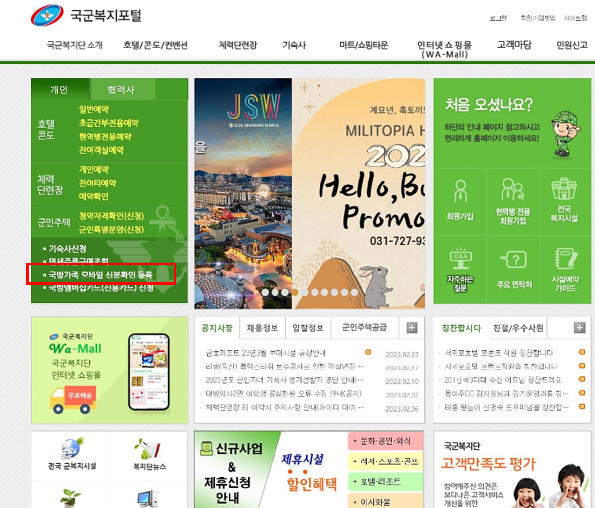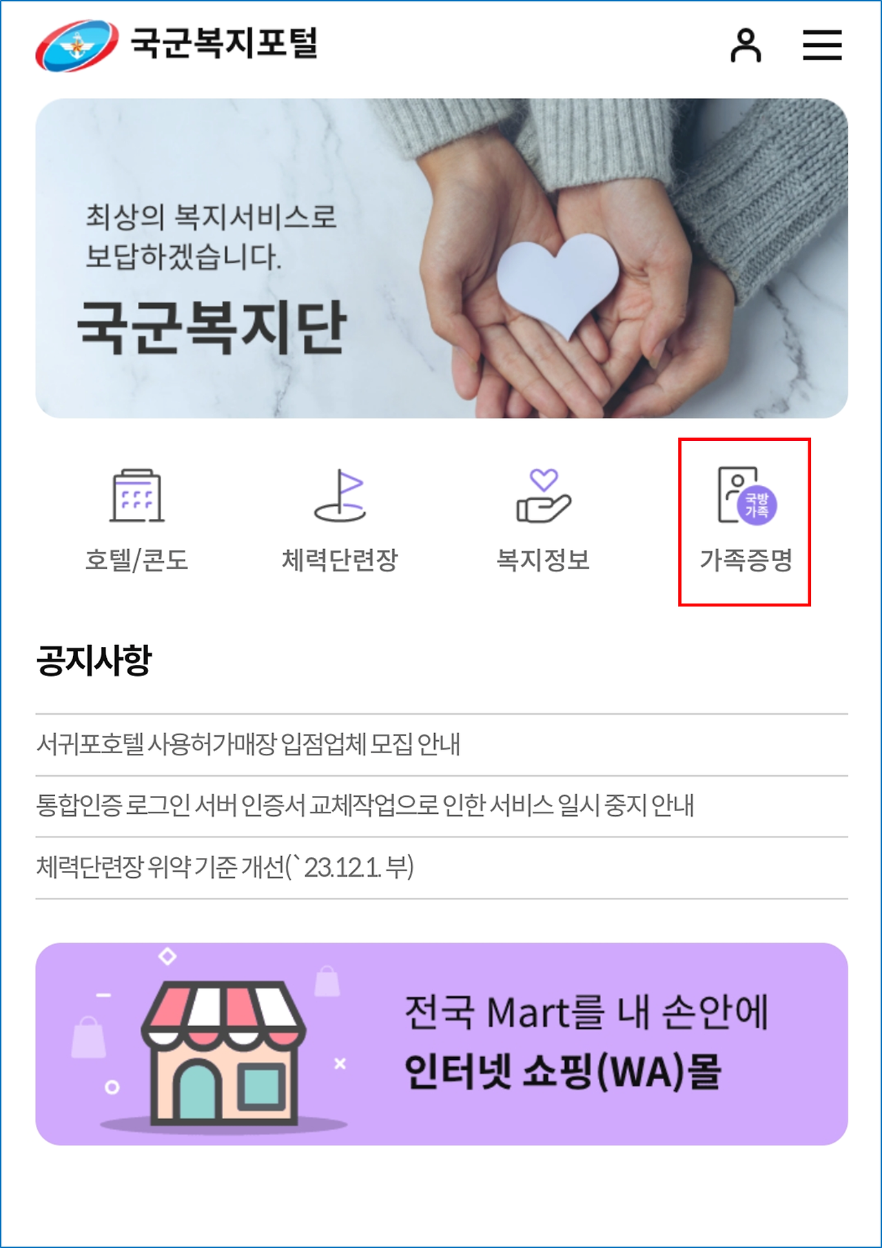 - 가족 중 현역 군인이나 국가유공자가 국군복지포털에 회원으로 가입해야 합니다. PC나 모바일에서 가입할 수 있으며, 이후 앱을 다운로드하여 가족을 등록합니다.