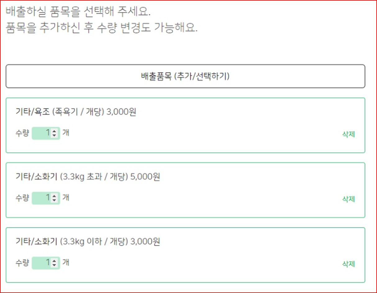④ 배출하신 품목과 수수료 금액이 다를 경우 수거가 불가합니다.