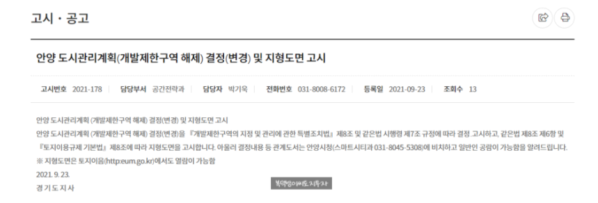 그동안 안양시는 관계기관 및 주무부처와 지속적으로 소통하며, 개발제한구역 해제 고시를 이끌었다고 합니다.