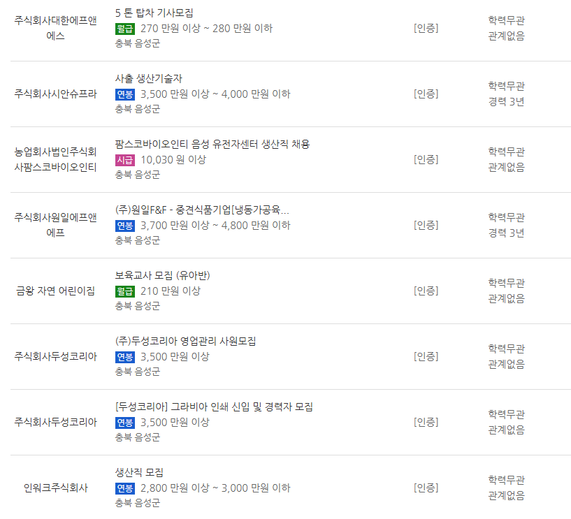 충북 음성 고용복지플러스센터 최신 취업 정보