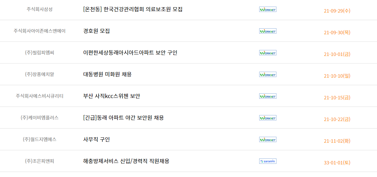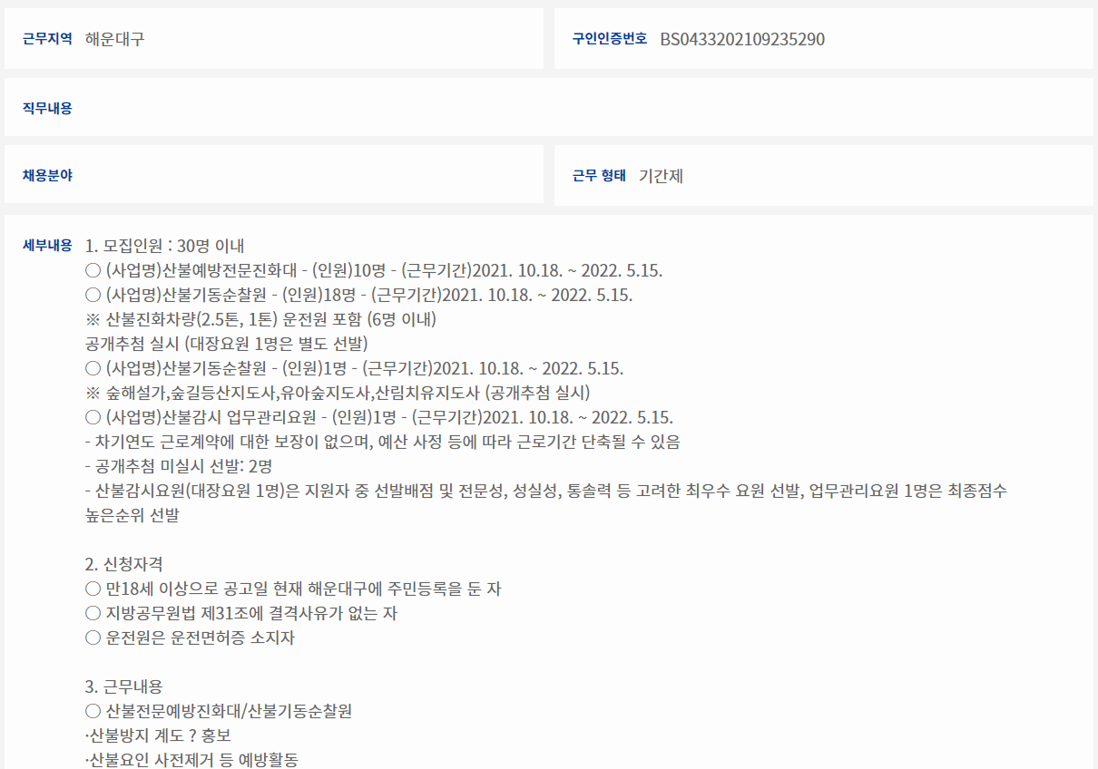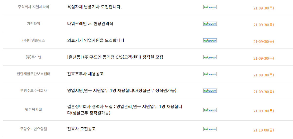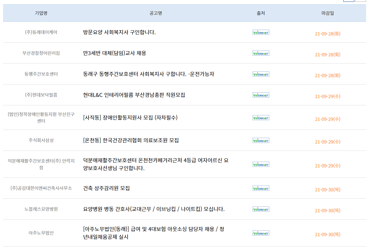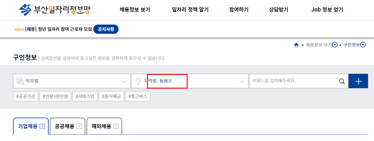 동래구를 위한 일자리도 있지만, 부산일자리 정보망에서는 부산지역의 모든 채용공고를 한꺼번에 보여주고 있습니다. 좀 더 자세히 살펴보겠습니다.