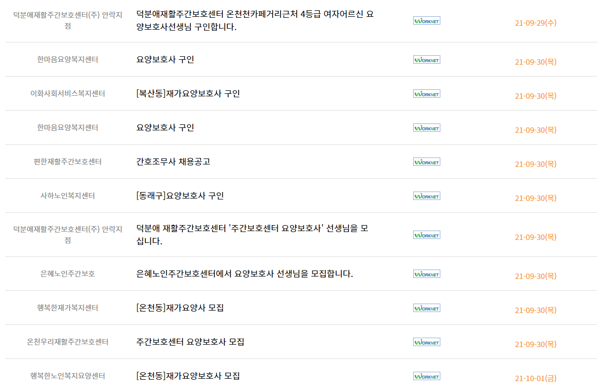 동래구의 경우 요양보호사의 대부분 일자리는 재가, 시설, 시설장등 다양한 형태의 일자리를 많이 구하고 있습니다. 수요에 비해 공급이 많습니다.