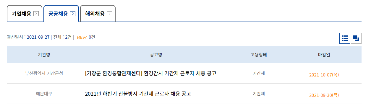 포스팅시점에 2건의 공공부문 일자리가 검색되었습니다.
