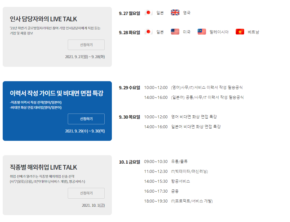 - 행사명 : 2021년 하반기 글로벌일자리 대전 (Online Job Fair Week 2021)