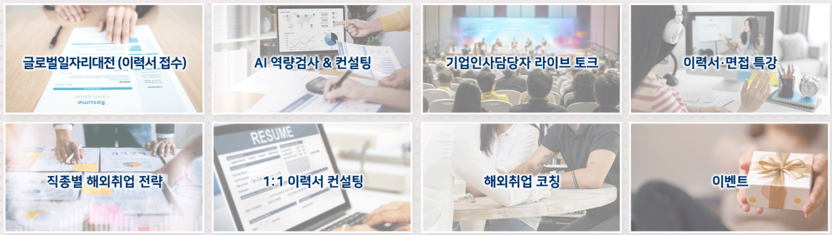 - 구 성 : 1:1화상면접, 취업정보 설명회, 해외취업 멘토링