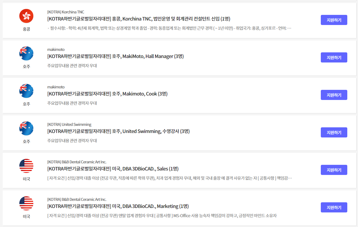 포스팅 시점의 해외취업 일자리에 대해서 자세히 알아보겠습니다.