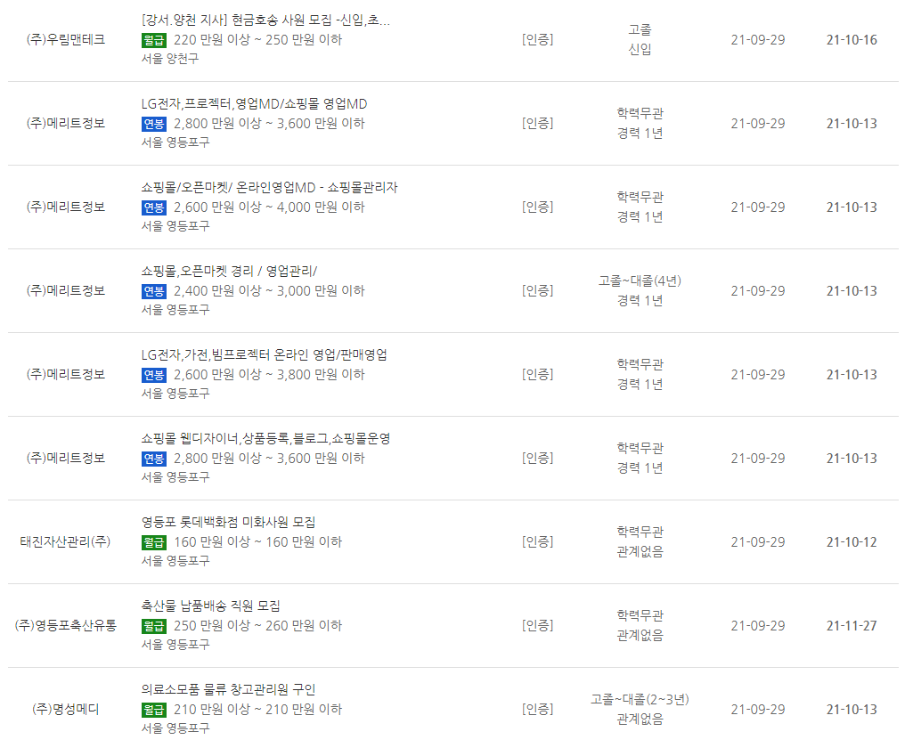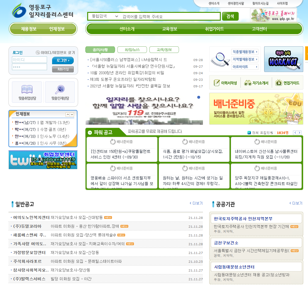 영등포구는 (1) 일자리플러스센터에서 제공하는 일자리와 (2) 서울 남부 (양천구, 영등포구) 고용복지 센터에서 제공하는 일자리로 나누어집니다. 중복 여부나 내용 등을 구체적으로 확인하기 위해서 직접 확인해 보았습니다. 제 구인표를 열람해본 결과 중복된 것이 있습니다.