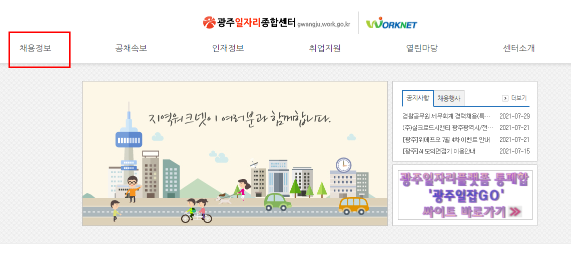 ② 일자리종합센터 하단의 '광주일자리종합센터 바로가기'를 클릭하세요