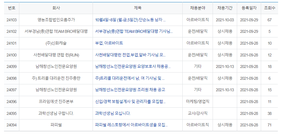 사천시 일자리 구인구직 정보 베스트 5