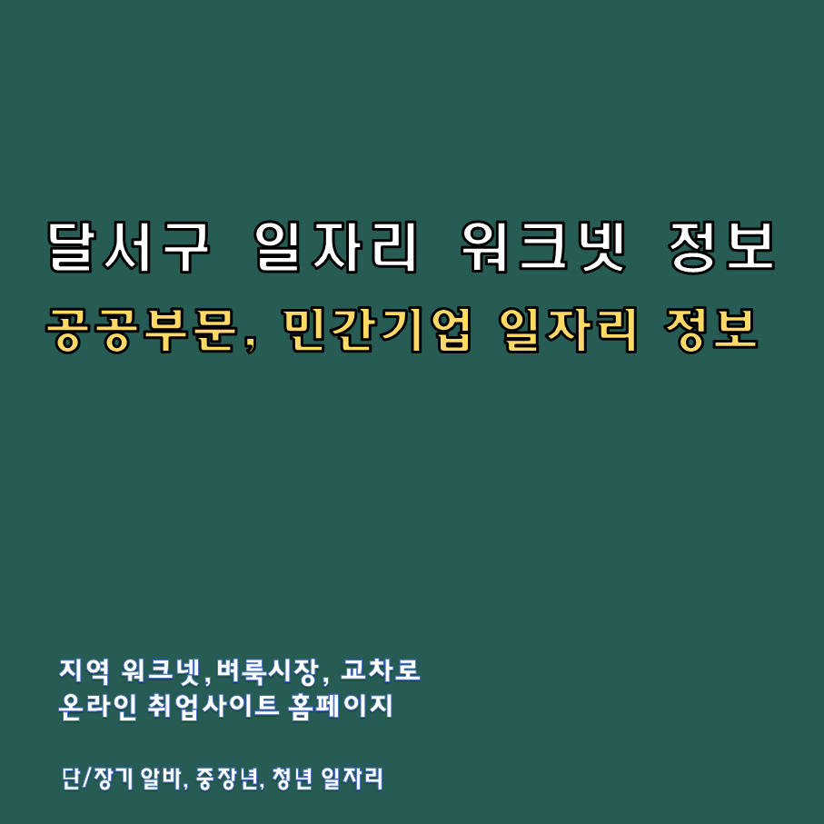 일일이 찾아가기 어려울 수 있습니다. 달서구는 워크넷과 연계하여 구인구직 정보를 제공하기 때문에, 아래와 같이 워크넷 주소를 직접 알려드리겠습니다.