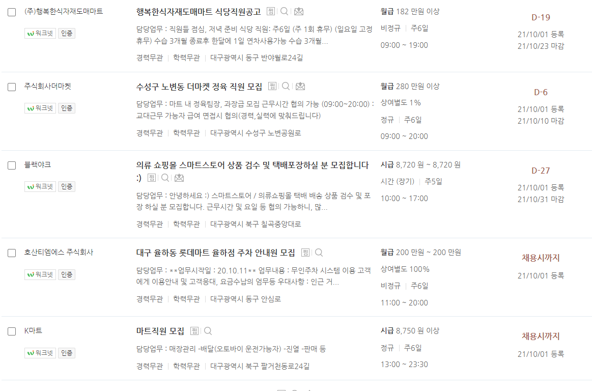 대구시의 일자리, 워크넷, 구인구직 정보에 대해서 알아보겠습니다.