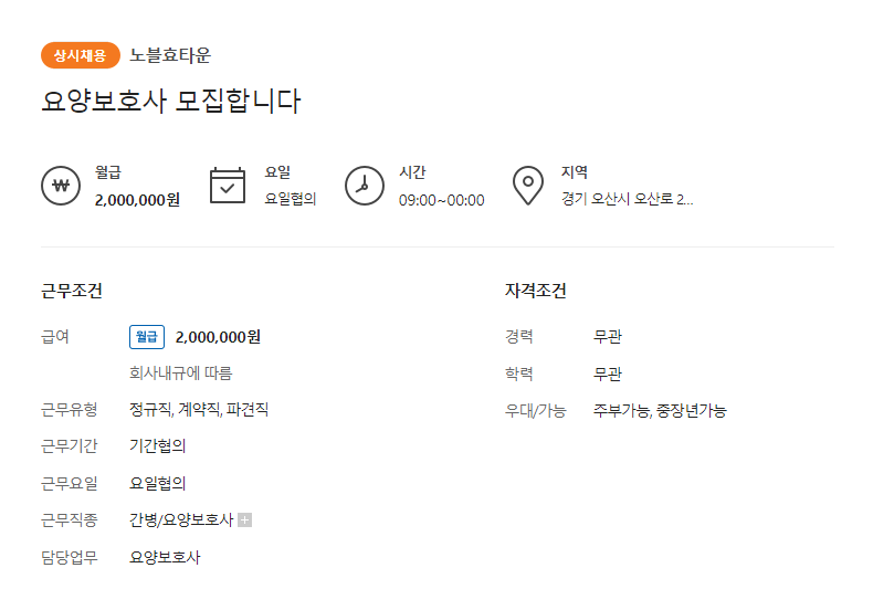 - 월급 2백만원 ㅣ 4대보험 ㅣ 시설내에 간병업무