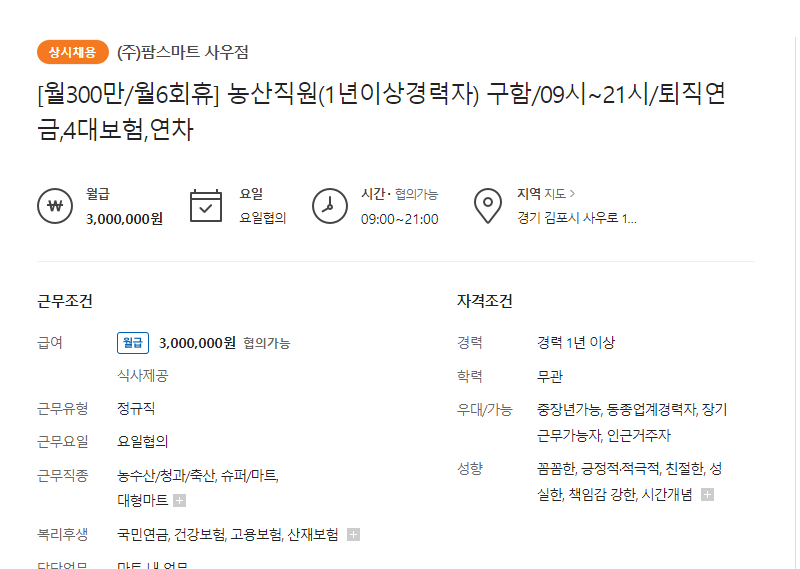 - 팜스마트 사우점 ㅣ 월급 3백만원 ㅣ 근무시간 09시~21시 ㅣ 4대보험~연차