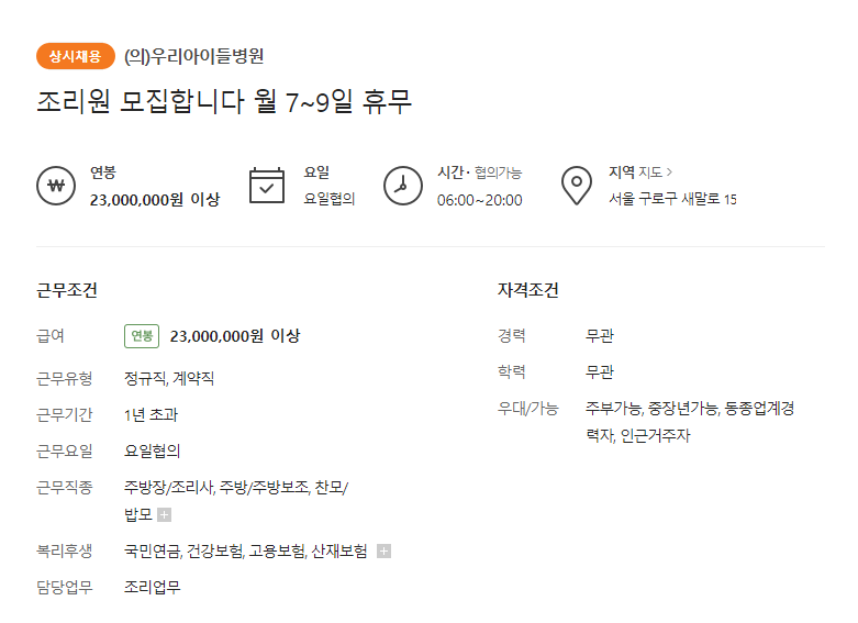 (2) 우리아이들 병원 조리 보조 담당 모집