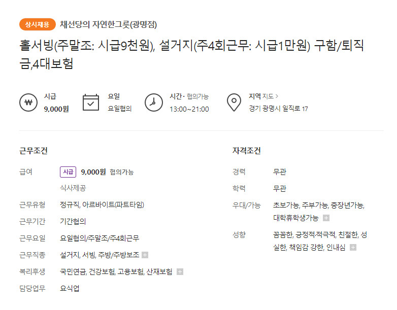 - 4대보험, 경력자 우대