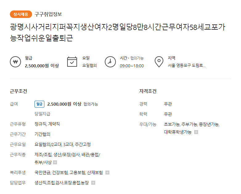 - 조립, 생산, 포장, 검사 업무 ㅣ 4대보험가입