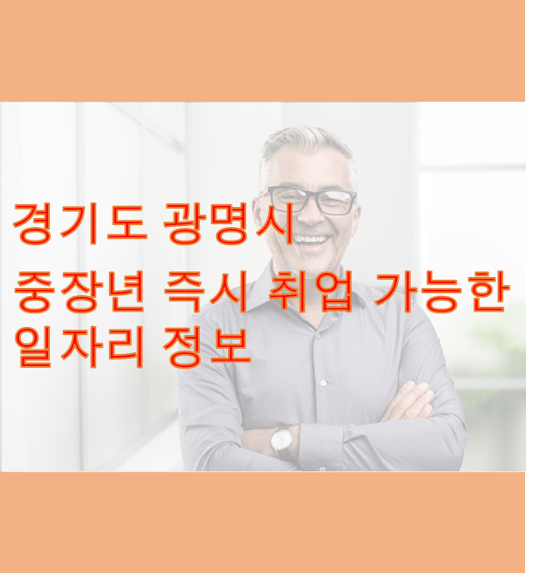 경기도 광명시의 즉시 취업가능한 중장년층 일자리에 대해서 알아보았습니다. 각 지역에서의 채용정보는 즉시 취업이 가능하고 다소 중장년층과 경력단절 재기가 필요한 분들에게 더욱 효과적일 수 있습니다.