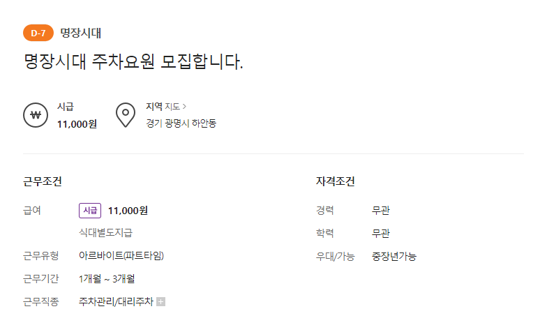 (6) 광명시 명장시대 주차요원 모집