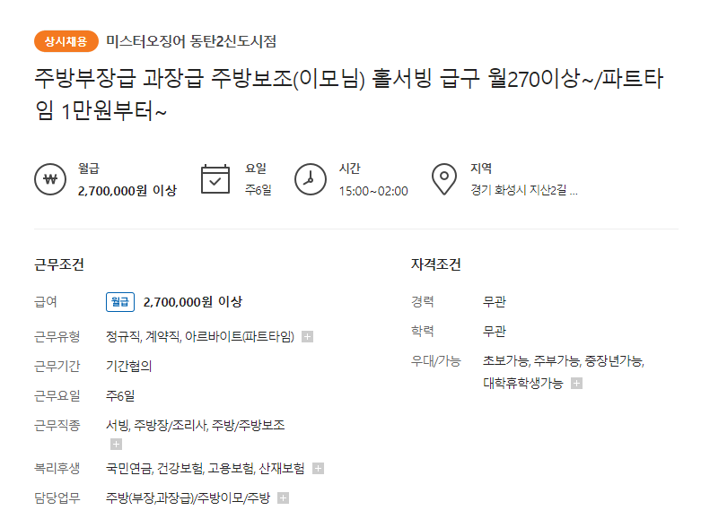 - 월급 270만원 이상 ㅣ 파트타임 시급 1만원부터