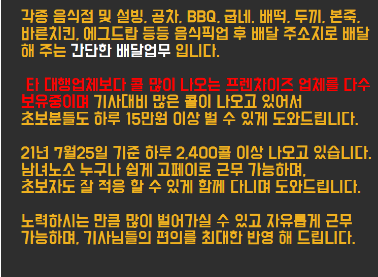 - 초보가능함. 중장년층 환영. 건강 성실한 분 채용합니다.