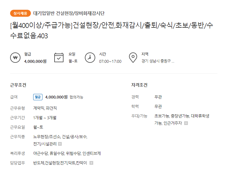 (5) 대기업 일반 건설현장 ㅣ 장비, 화재감시단 모집