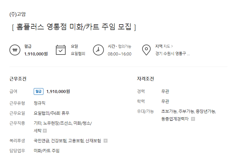 (8) 홈플러스 영통점 미화카트 주임 모집