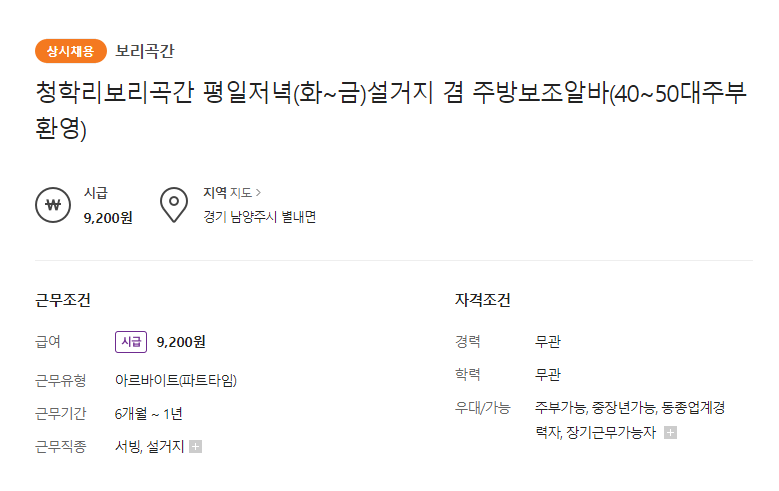- 시급 9,200원 ㅣ 평일저녁 (화~금) 설거지, 주방보조