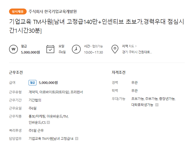 - 주6일근무제ㅣ 10시~17시30분 ㅣ 홍보마케팅, 인아웃바운드 CS 외