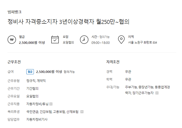 (10) 정비사 자격증 소지사 우대, 3년이상 경력자