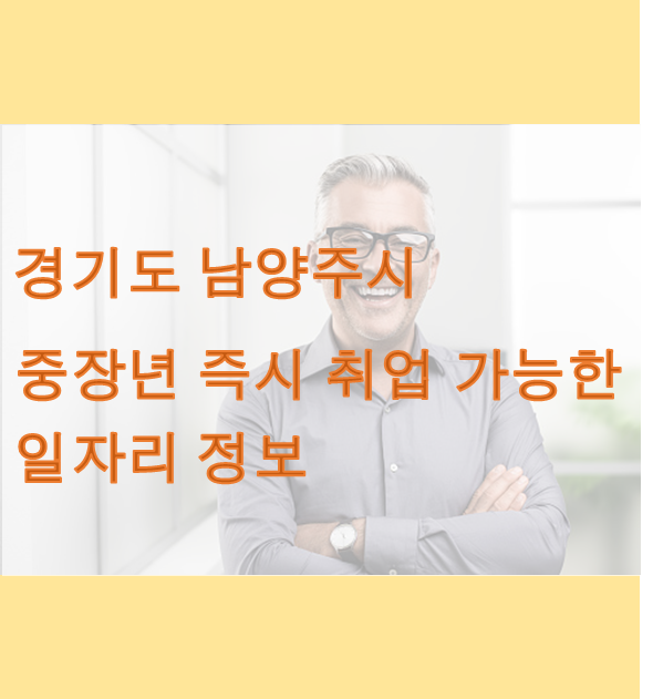 경기도 남양주시의 즉시 취업가능한 중장년층 일자리에 대해서 알아보았습니다. 각 지역에서의 채용정보는 즉시 취업이 가능하고 다소 중장년층과 경력단절 재기가 필요한 분들에게 더욱 효과적일 수 있습니다.