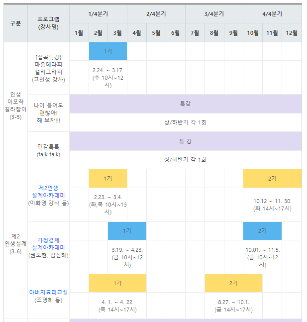 (1) 인생이모작 연간 프로그램 안내