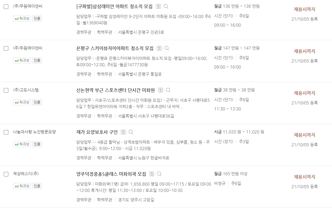 현재, 상담보다는 바로 일자리르 찾으시는 분들은 아래와 같이 유관기관의 주소를 남겨드릴 테니, 일자리 정보를 확인하시고 지원하시면 됩니다. 일자리 특성상 단기적으로 하는 경우가 많습니다.