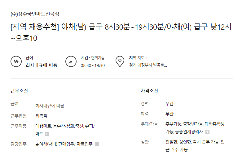 (2) 지역채용 추천 ㅣ 국민마트 ㅣ 야채 남자