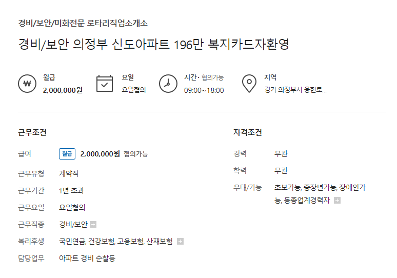 - 근무시간 06시~익일06시 ㅣ 월급 2백만원