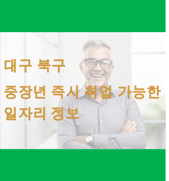 대구 북구의 즉시 취업가능한 중장년층 일자리에 대해서 알아보았습니다. 각 지역에서의 채용정보는 즉시 취업이 가능하고 다소 중장년층과 경력단절 재기가 필요한 분들에게 더욱 효과적일 수 있습니다.