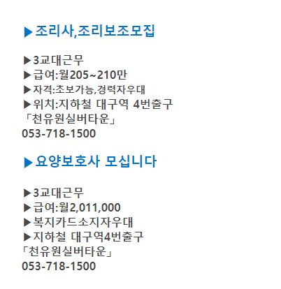 - 조리사 조리보조는 3교대 근무 ㅣ 중장년, 초보 환영 ㅣ 월급 205~210만원