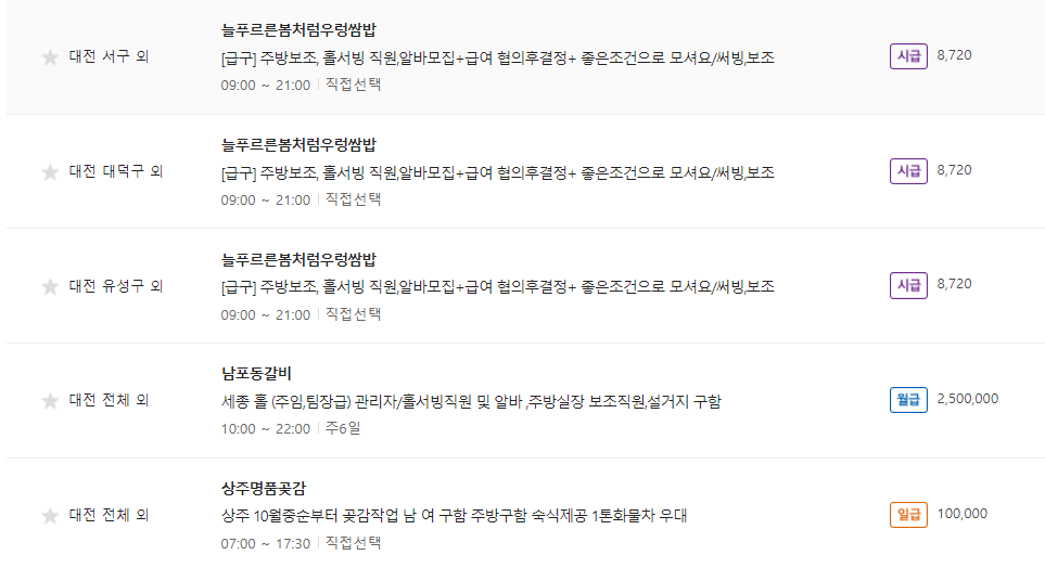 대전광역시 중장년 우대 즉시 취업 가능 일자리 10