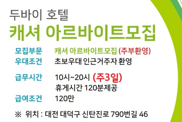 (7) 대전 유성구 두바이 호텔 (대덕구 호텔, 유성구내 시내호텔 카운터 매니저 13건 모집)
