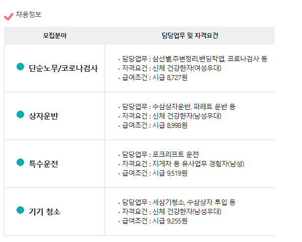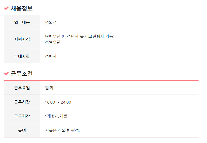 - 각 담당분야에 따라 근무시간 및 임금 차이 있습니다.