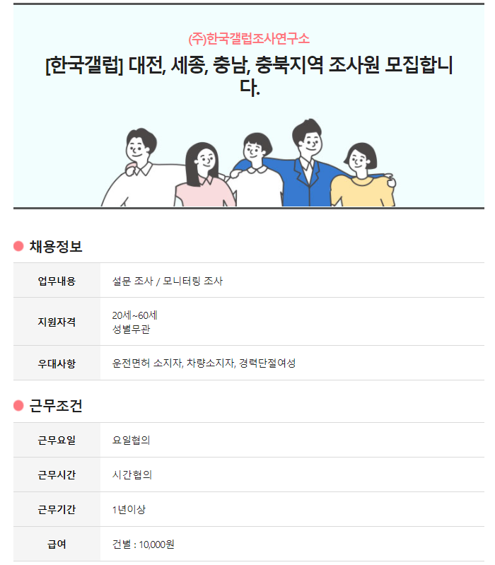 (5) 한국갤럽조사 연구소에서 조사원 모집