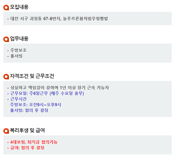 (10) 대전광역시 요리서빙 주방보조 찬모 모집 구인광고