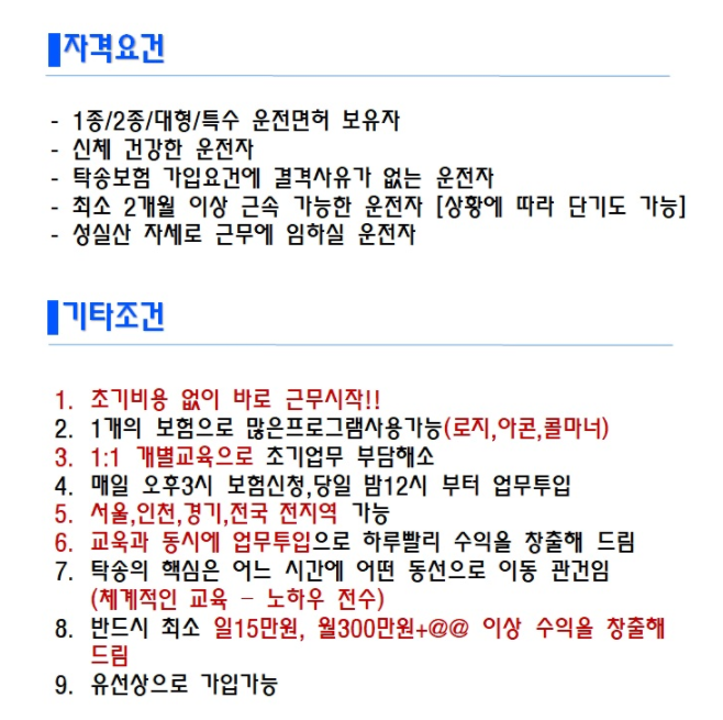 (9) 로켓탁송대리 알바 투잡가능 중장년층 우대