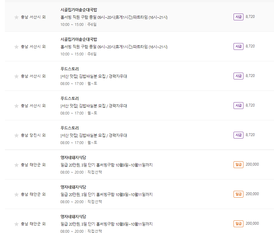 - 시급 평균 1만원 수준 (너무 낮은 곳은 찾지 마세요)